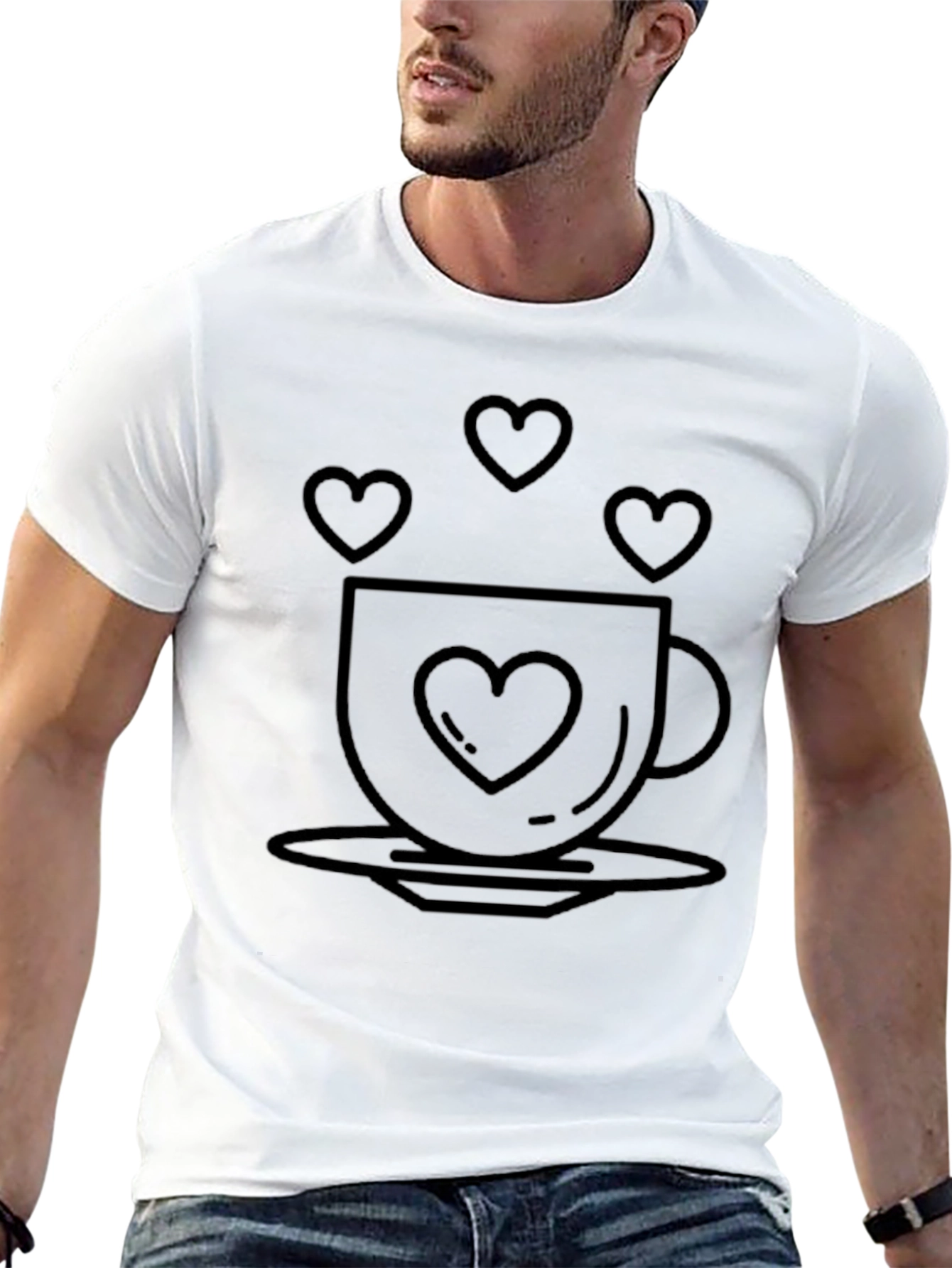 Show your love for coffee with this stylish black graphic t-shirt. The design features a charming coffee cup with a heart, accompanied by floating hearts, perfect for expressing your passion. Made from comfortable, breathable material, this unisex tee is ideal for casual outings, coffee dates, or simply relaxing at home. Its unique design and flattering fit make it a versatile addition to any wardrobe. Express yourself with this statement piece that speaks to coffee lovers and those who appreciate a touch of romance in their everyday style.